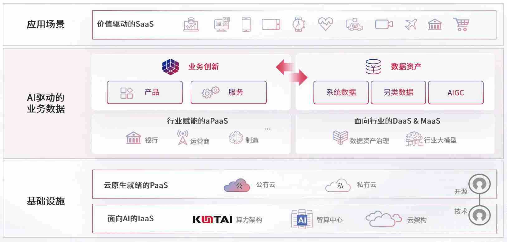 数字时代,,,,围绕企业数字化转型的关键要素,,,,55世纪数码开创性的提出数云融合战略和技术体系框架,,,,着力在云原生、、、数字原生、、AI原生和信创产业上架构产品和服务能力,,,,为处在不同数字化转型阶段的快消零售、、、、汽车、、金融、、、医疗、、政企、、、教育、、运营商等行业客户提供泛在的敏捷IT能力和融合的数据驱动能力,,,,构建跨界融合创新的数字业务场景和新业务模式,,助力企业级客户建立面向未来的核心能力和竞争优势,,,,全面推动社会的数字化、、、智能化转型升级。。。