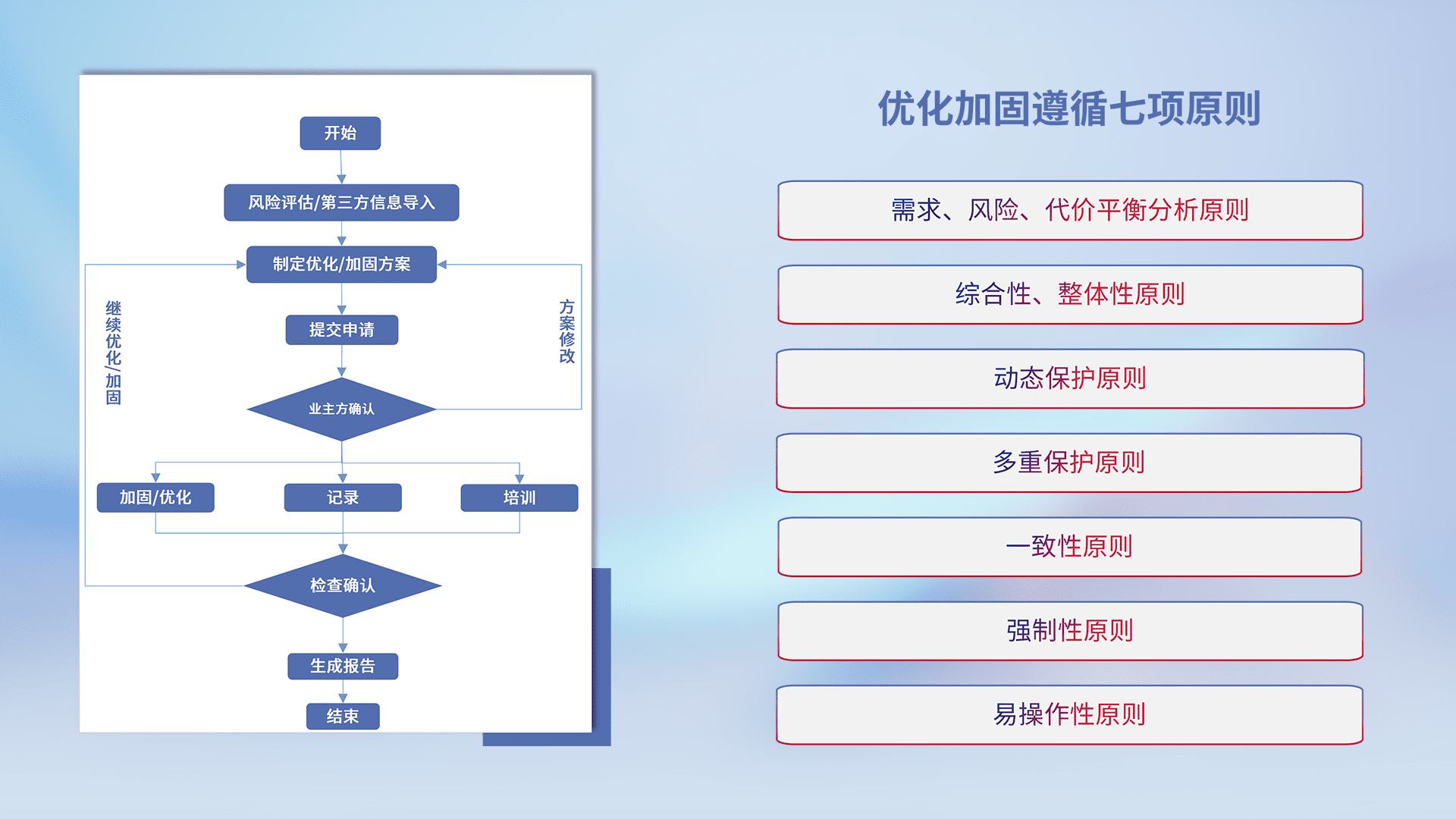 最大程度利用现有资产,,对评估发现的问题进行封堵与整改,,,,防止漏洞被利用,,,提升整体网络安全性,,,为客户带来高标准的优化加固服务。。。